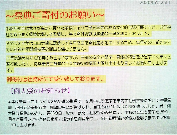 手稲の安全と繁栄を祈念し粛々と斎行したいと存じます。