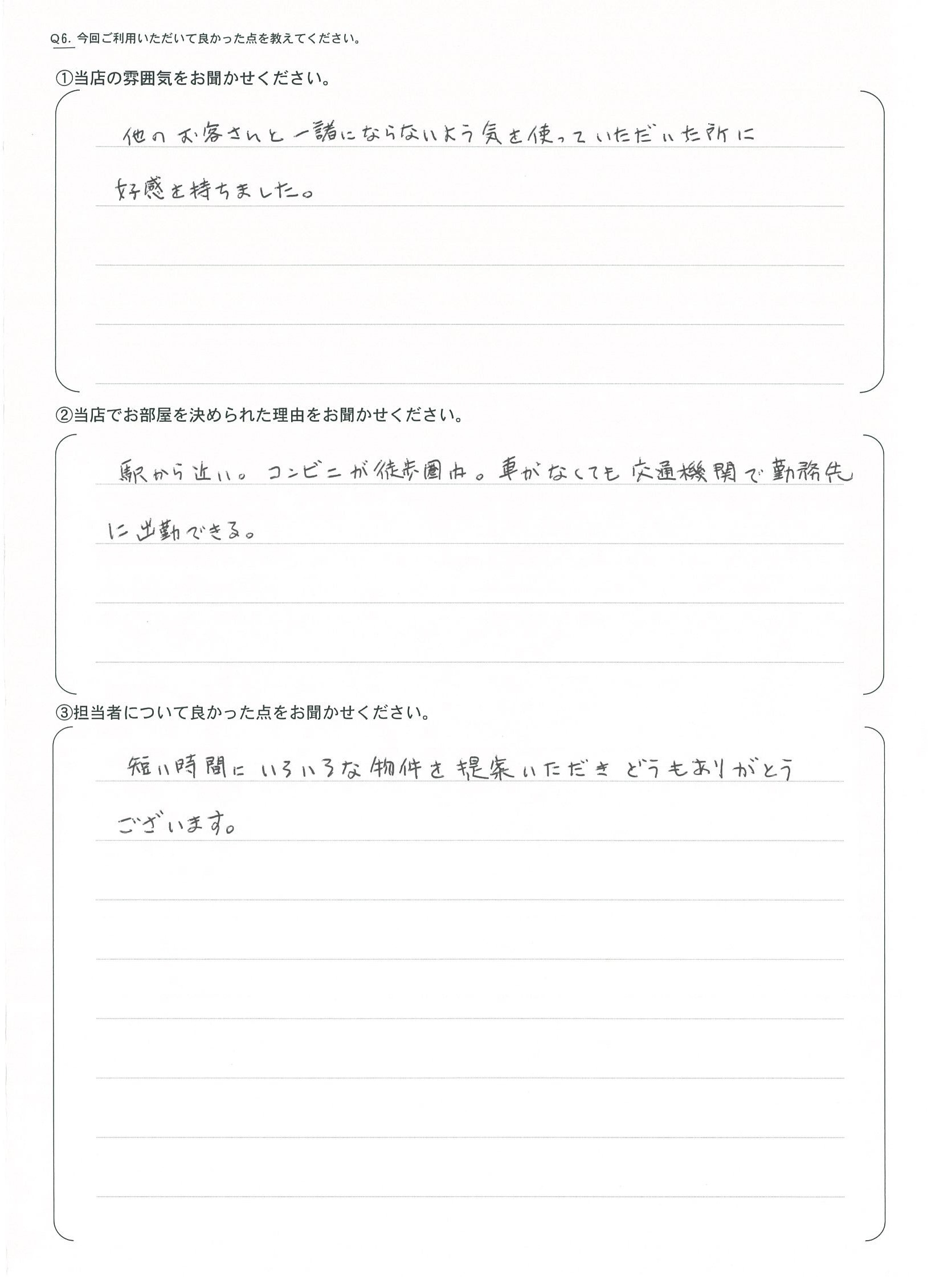 「短い時間で色々な物件を提案して頂き、ありがとうございます!」